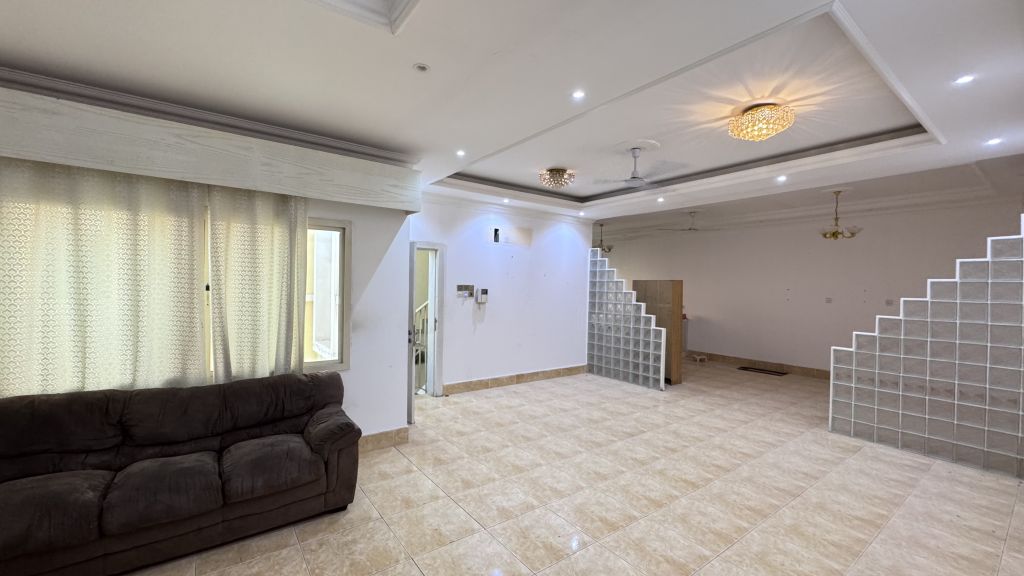 A distinguished real estate opportunity for rent: a full floor in an upscale villa in the Sanad area. It consists of 3 spacious bedrooms, 3 bathrooms, a very large living room, a spacious kitchen, a dining room, and split air conditioners. The monthly rent is 350 dinars, including electricity. A prime location close to all services.