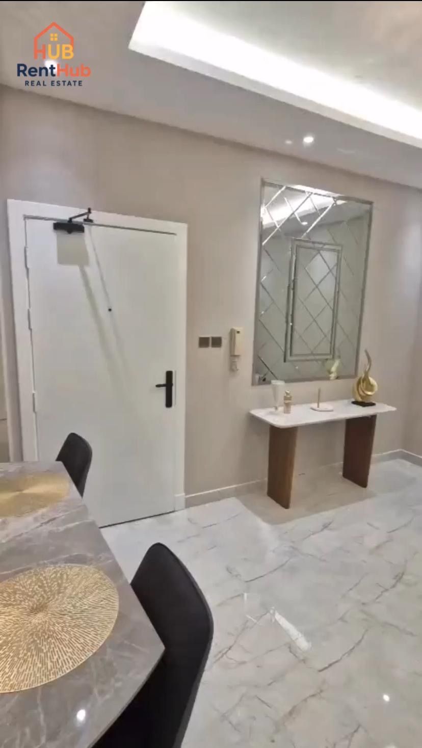A furnished apartment for rent, fully furnished, first occupant, containing one bedroom, a living room, a kitchen, and two bathrooms. Suitable for university students and engineers. Located near King Hamad Hospital. 400 dinars.
