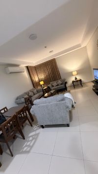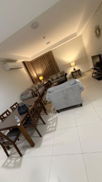 For rent: A luxurious and very clean apartment, fully furnished in Isa Town. The apartment consists of 3 bedrooms, a spacious living room, 4 bathrooms, a fully equipped kitchen, 3 balconies, a maid's room with a bathroom, a storage room, and a laundry area. It includes two elevators and a parking space. The price is 400 dinars. Electricity is under the owner's name, and the tenant pays the bill.