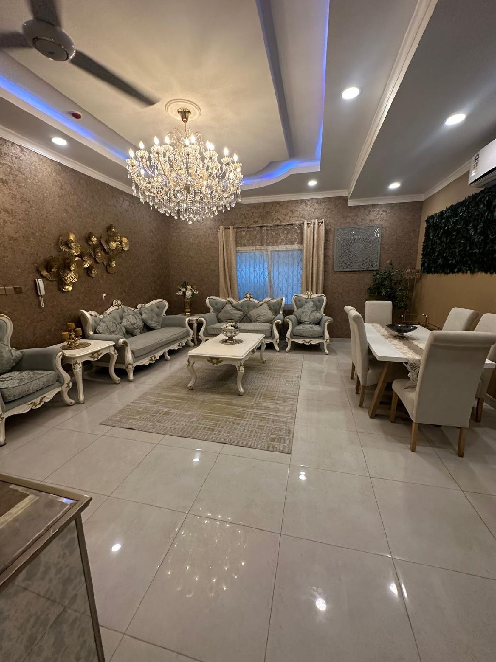 A fully furnished, luxurious, and very elegant apartment for rent, inclusive of water and electricity, located in Riffa Al Hajiyat. It consists of 3 bedrooms, 3 rooms, 1 living room, 1 kitchen, a small yard, and a shaded parking space. The price is 450 dinars, inclusive of electricity and water. Contact for more information.