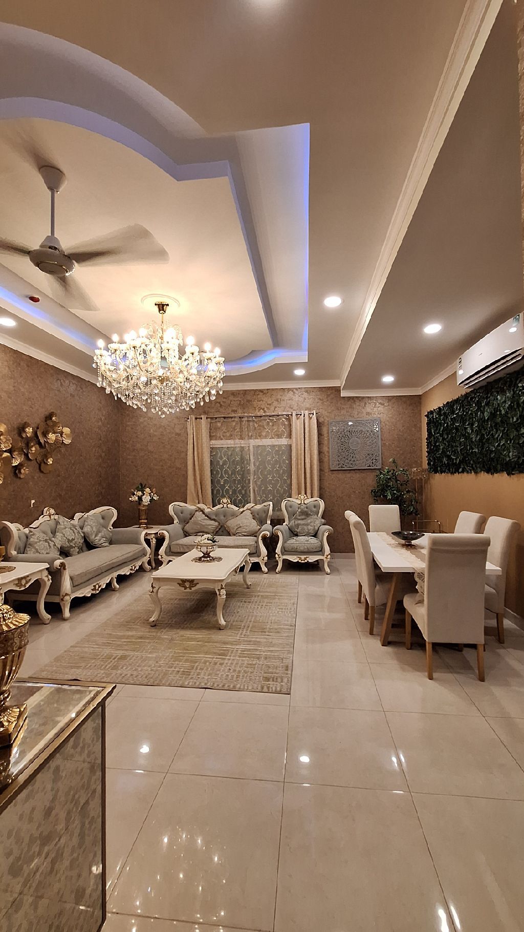 For rent: Luxurious, fully furnished apartments including electricity, consisting of three rooms, a living room, and three bathrooms. Price is only 450, negotiable.