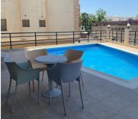 2-bedroom apartment for rent at a rate of BD 425 with BD 60 EWA. There is room for negotiation in price. Fully furnished, includes gym, swimming pool, parking, access control door, CCTV, and 24/7 security. It is located in Umm Al Hassam near the British Club.