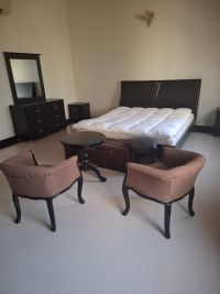 For rent, a fully furnished apartment in Juffair, in a building for families only. It is fully furnished. Parking, gym, swimming pool, sauna, and elevator. It consists of two master bedrooms, a living room, a bathroom, and a kitchen. Required 330 dinars, excluding electricity and water. For contact.