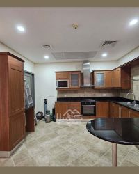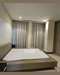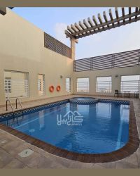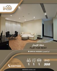 For rent: A fully furnished deluxe apartment in a quiet and upscale area in Um Al Hassam, near the road leading to Saudi Arabia. First, apartment details: 1 spacious bedroom, 1 bathroom, 1 family living room, 1 American-style kitchen. Second, facilities and services: security guard, surveillance cameras, swimming pool, gym (fitness club), steam sauna, squash court, central air conditioning. Third, rent: 350 dinars including electricity, with a limit of 50 dinars for electricity. For more information, please contact.