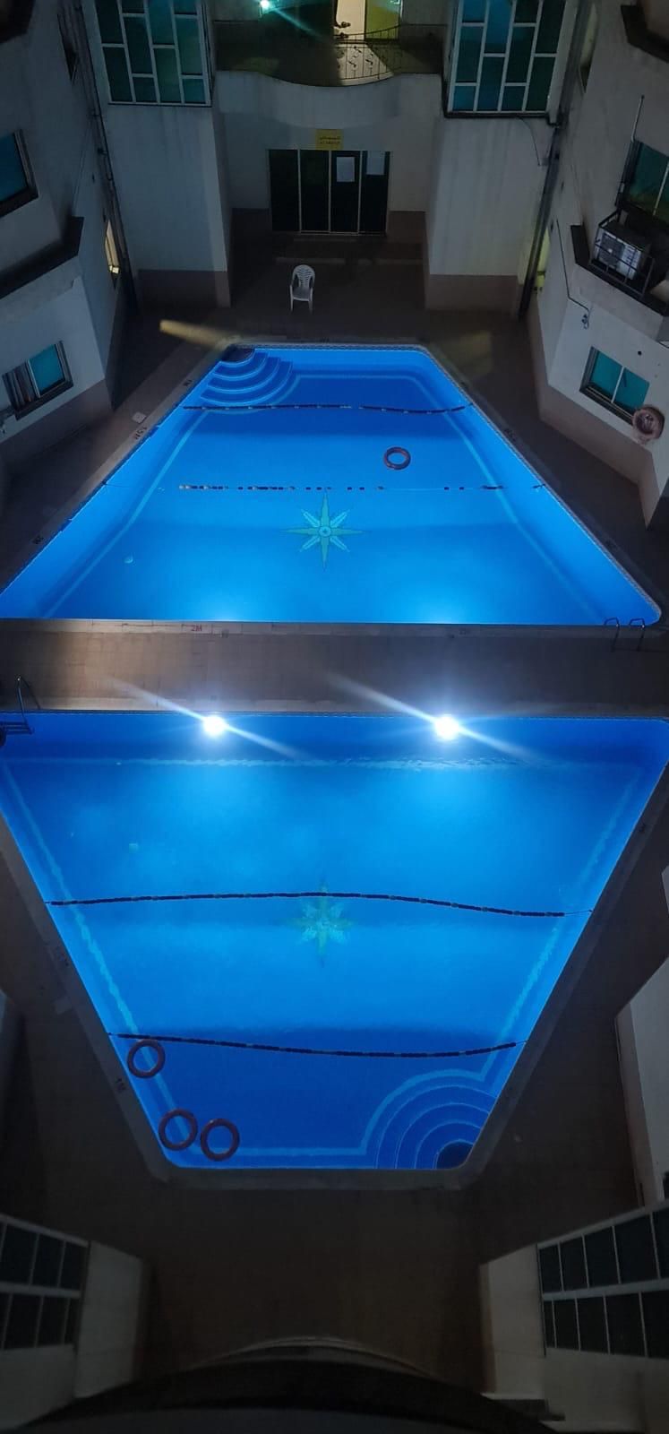 For rent, a large apartment in Juffair. It consists of two bedrooms, two bathrooms, a living room, and a kitchen. Furnished. Swimming pool. Parking. Reception. 380 dinars. Electricity and water included.