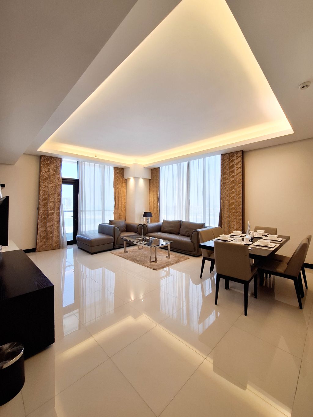 For rent: A luxurious fully furnished apartment in the Seef area, close to shopping malls, including electricity and water fees. Apartment features: three bedrooms, three bathrooms, a living room, an open fully equipped kitchen with all appliances. Building amenities: parking, swimming pool, gym, and a play area. Monthly rent starting from 850 Bahraini dinars, including electricity and water fees. Reference number: AH-FR01924. For inquiries, please contact us at the following numbers.