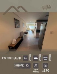Apartment for rent in Amwaj - prime location and integrated facilities. An elegant apartment in the upscale Amwaj area, fully equipped and providing all means of comfort. Specifications: bedroom - bathroom - living room - equipped kitchen - parking space - elevator - gym - swimming pool. Monthly rent 370 dinars including electricity. For contact.