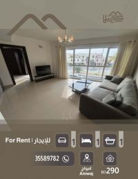 For rent, a furnished apartment in Amwaj Islands - a beautiful and fully equipped apartment, consisting of one bedroom, a bathroom, a fully equipped kitchen, and a fully furnished living room. Building amenities include an elevator, parking, a gym, a swimming pool, and an upscale and quiet location. The monthly rent is 290 dinars, including electricity.