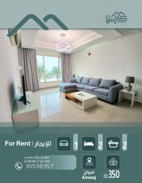 For rent: Luxurious furnished apartments in the Amwaj area, consisting of two bedrooms, a spacious family living room, a kitchen, and two bathrooms. There is a swimming pool, a gym, and a reception. The price is 350 dinars, including electricity with a consumption limit of 30 dinars. For inquiries.