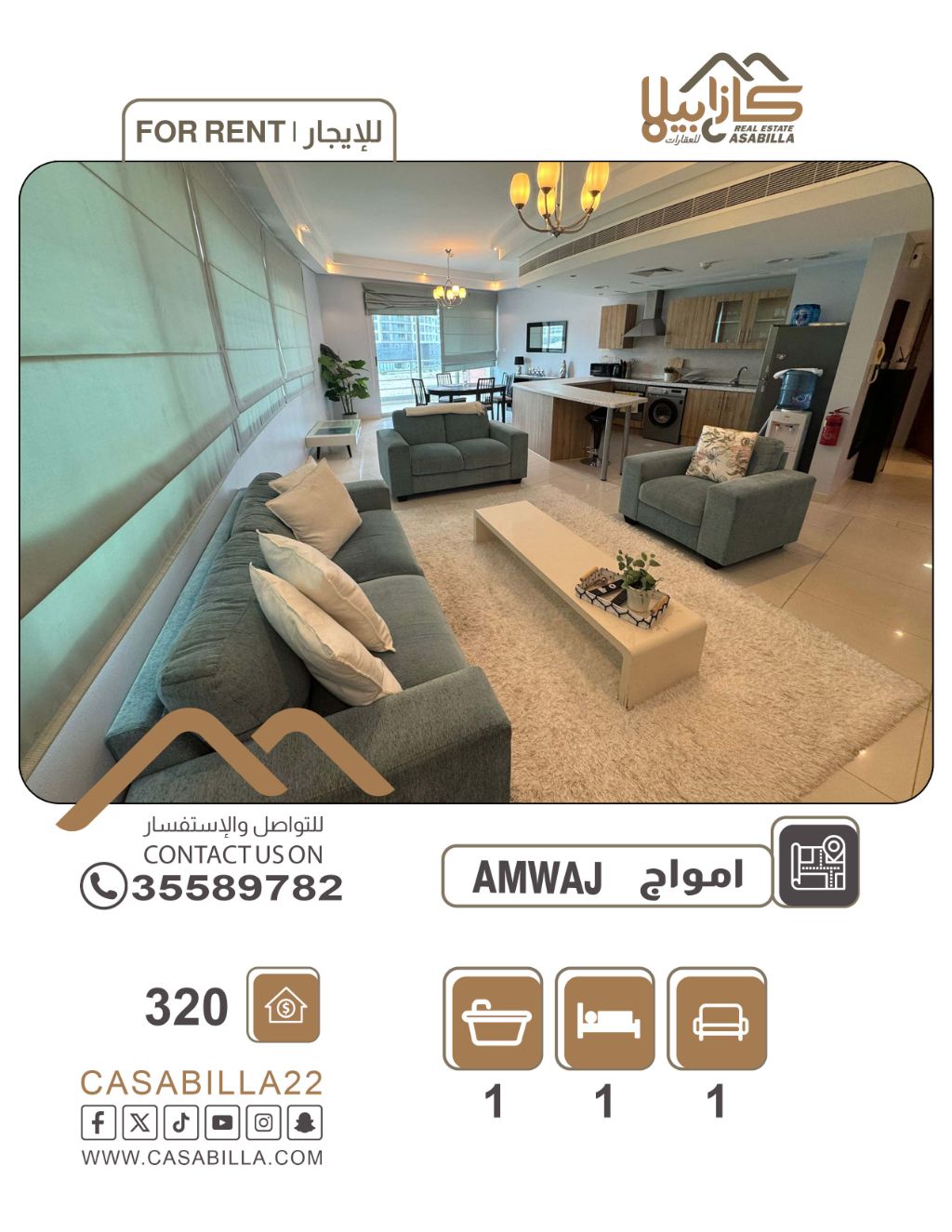 An apartment for rent in Amwaj Islands, one bedroom with a balcony, in a modern building. An elegant apartment for rent in Amwaj Islands, inside a modern building, suitable for quiet living and close to all essential services. Apartment specifications: one bedroom, comfortable living room, practical kitchen, bathroom, balcony. Building features: modern building, elevator, gym, swimming pool, vibrant location close to all services. Monthly rent: 320 Bahraini dinars. For contact and inquiries.