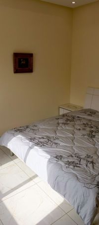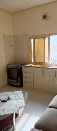 For rent, a fully furnished apartment in Tubli, consisting of one bedroom, one bathroom, and an open kitchen connected to the living room. Electricity is included. The rental price is 200 dinars.