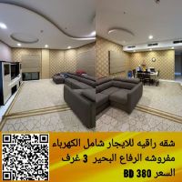 A luxurious apartment for rent, including electricity and water, fully furnished with elegant furniture in Riffa Al Bahri. It consists of 3 bedrooms, 3 bathrooms, 1 large living room, 1 spacious kitchen, 2 balconies, a private shaded parking spot, and an elevator. The price is 380 dinars, including electricity and water. For contact.