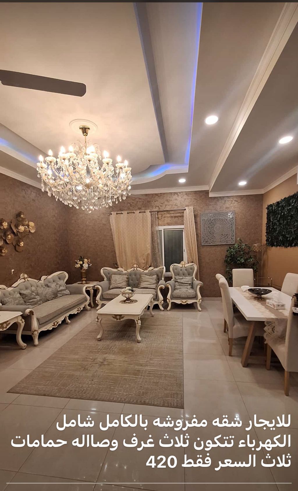 A fully furnished apartment in Hajiyat - consisting of three bedrooms, three bathrooms, a living room, and a kitchen. rent is 420 dinars
