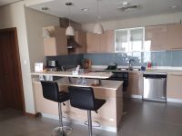 Good afternoon. I have an apartment in the Grand Seef Area for rent. It consists of one bedroom, two bathrooms, and a living area on floor 28 with a view of the Financial Harbor. The rent is BD400, including EWA of BD20