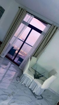 For rent: A very luxurious, fully furnished apartment with high-end furniture in Al Hidd, New Area, featuring a distinctive sea view. Includes electricity and water without interruption. 1 master bedroom, 2 balconies with sea view, 2 bathrooms, living room, furnished kitchen with full furniture and utensils. Building services include a health club, children's playroom, swimming pool, and private park. Internet services available for 300 dinars. For contact.