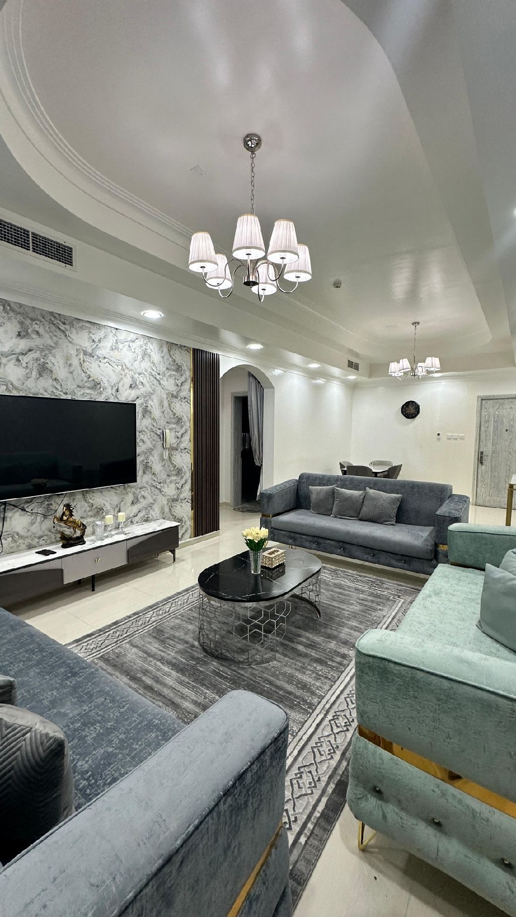 For rent: An apartment in Al-Hadd, including electricity, consisting of 4 rooms, a hall, a kitchen, and four bathrooms. Price is only 500.