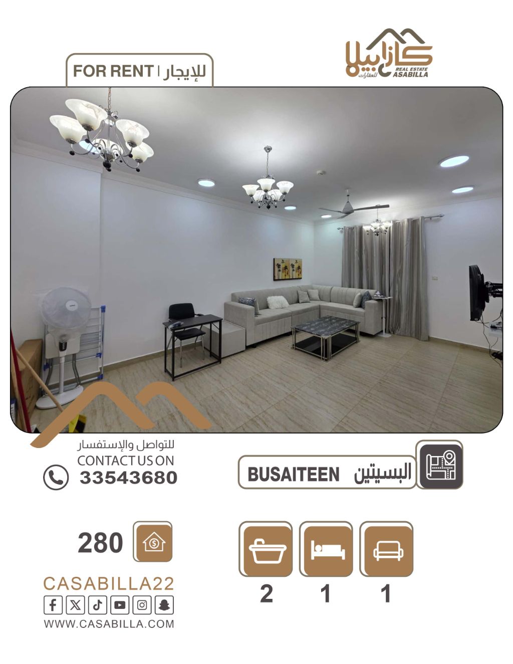 For rent: A fully furnished apartment in the Bseiteen area, including utilities for 20 dinars. Apartment details: master bedroom, 2 bathrooms, spacious living room with a bathroom, open kitchen. Facilities and services: parking, swimming pool, gym. Prime location near the main road. Rental price: 280 including utilities for 20 dinars. For contact.