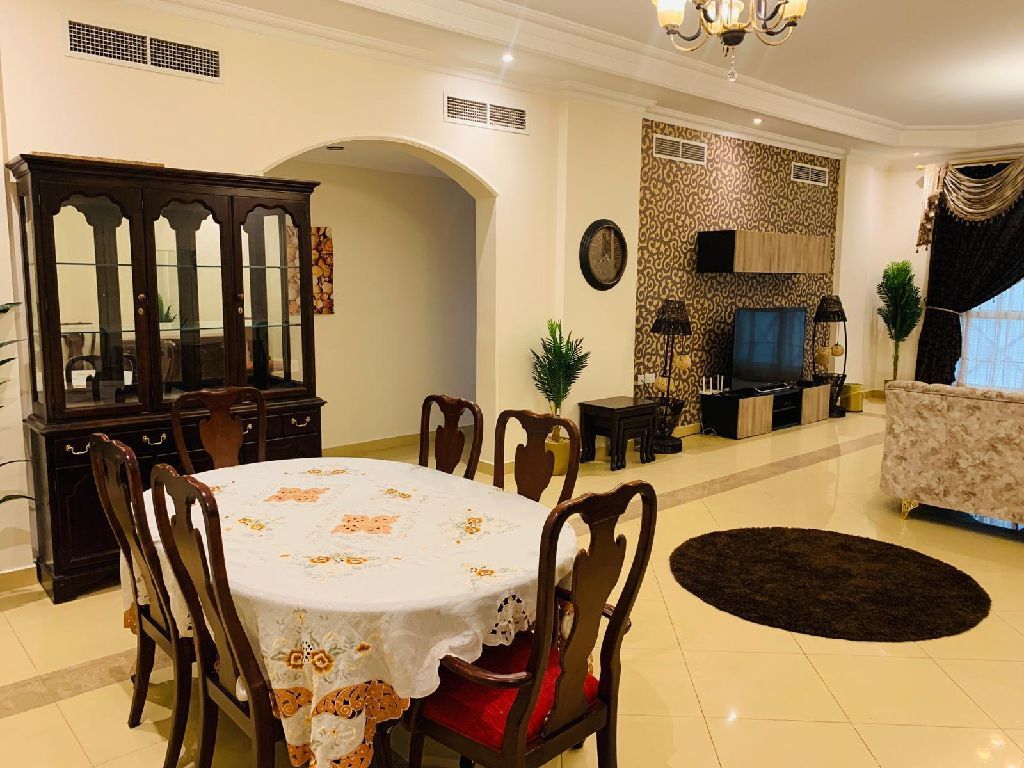 An apartment for rent in Al Juffair. Fully furnished and includes electricity. It consists of 3 bedrooms, 3 bathrooms, 1 living room, 1 kitchen. The building has a gym and a swimming pool. The area is 181 square meters. For rent at 450 dinars. Negotiable. For contact.