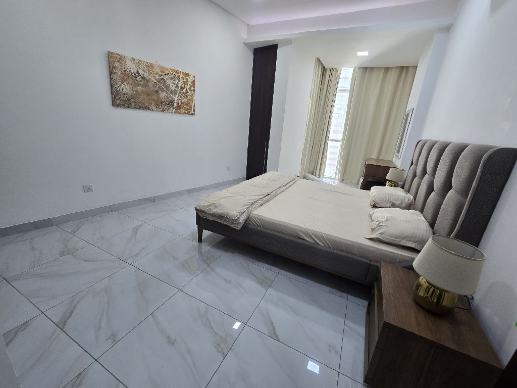 Furnished apartment for rent in Juffair, including electricity. The apartment consists of a bedroom, living room, kitchen, bathroom, laundry room, balcony, swimming pool, and gym. Rent is 330 dinars. For inquiries. Note: There is also a two-bedroom apartment for rent in the same building.