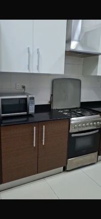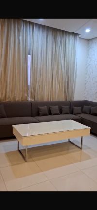 For rent: Furnished apartments in Al-Hajiyat with 3 bedrooms, 2 bathrooms, a living room, a kitchen, an elevator, and a parking space. Fully furnished with electricity and water for 330 dinars, and the electricity bill is 50 dinars.