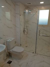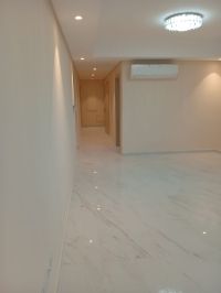 A semi-furnished apartment for rent in Riffa Al-Bahir with super deluxe finishing in a new building, first occupant. It has 3 bedrooms, a laundry room, 3 bathrooms, a kitchen, a living room, an elevator, and a parking space on the first floor. The rent is 450 dinars without electricity or 500 dinars including electricity.