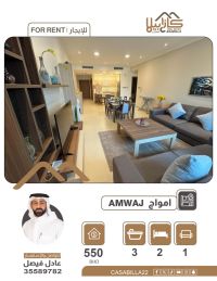 A furnished two-bedroom apartment in Amwaj Islands, electricity allowance 30 BD. Price 550 BD. An opportunity to live in the most prestigious areas of Amwaj Islands. A fully furnished apartment in an upscale and beautiful location, close to all services to ensure your comfort. Specifications: 2 bedrooms - spacious living room - 3 bathrooms - equipped kitchen - fully furnished. Price 550 Bahraini dinars per month (includes electricity up to a maximum of 30 dinars). For booking and inquiries.