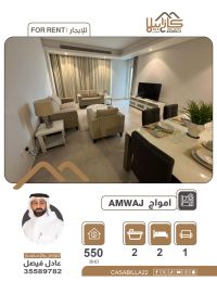 A two-bedroom apartment in Amwaj Islands, electricity allowance 50 BD. Price 550 BD. An opportunity to live in the most prestigious areas of Amwaj Islands. An apartment in a prime location, close to all services to ensure your comfort. Specifications: 2 bedrooms - spacious living room - 2 bathrooms - equipped kitchen. Price 550 Bahraini dinars per month (includes electricity up to a maximum of 50 dinars). For booking and inquiries.