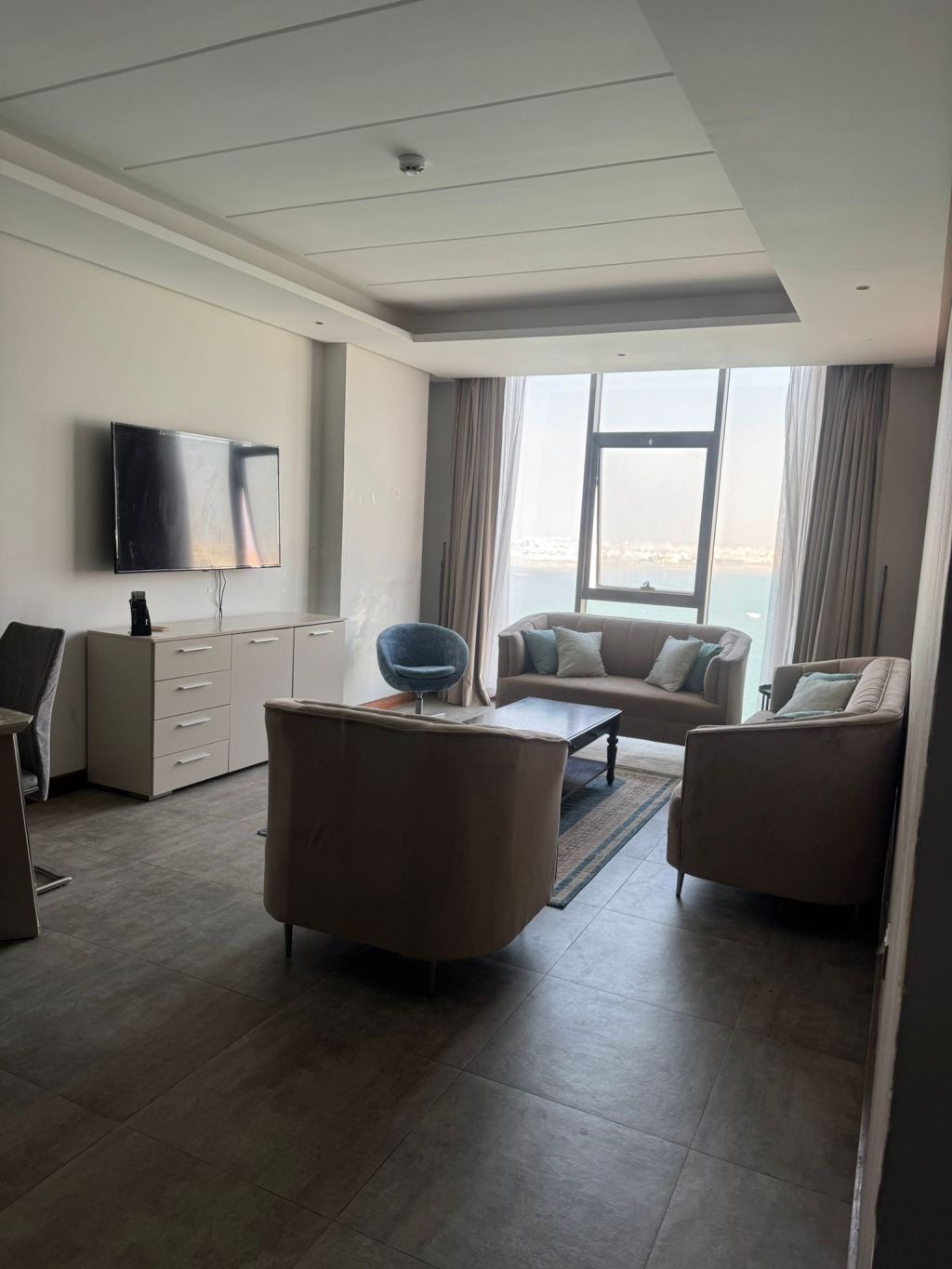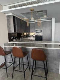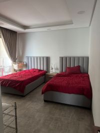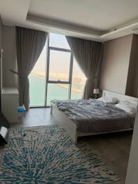 For rent: A luxurious apartment overlooking the sea and the Sheikh Khalifa Bridge in the Hidd area, Ninth District. It consists of two bedrooms, three bathrooms, and a balcony. Amenities include a swimming pool, cinema, separate male and female gyms, nursery, PlayStation game room, and wedding hall. Rent is 500 dinars, including electricity, for a period of 30 days.