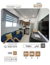 For rent: A fully furnished, elegant studio in Tubli, close to the sea. It includes a room with a kitchen and a bathroom, a living area, and covers electricity and water. The building is new, located in a quiet and safe area, near all services and the sea. Rent is 160 dinars per month, including electricity and water. For contact.