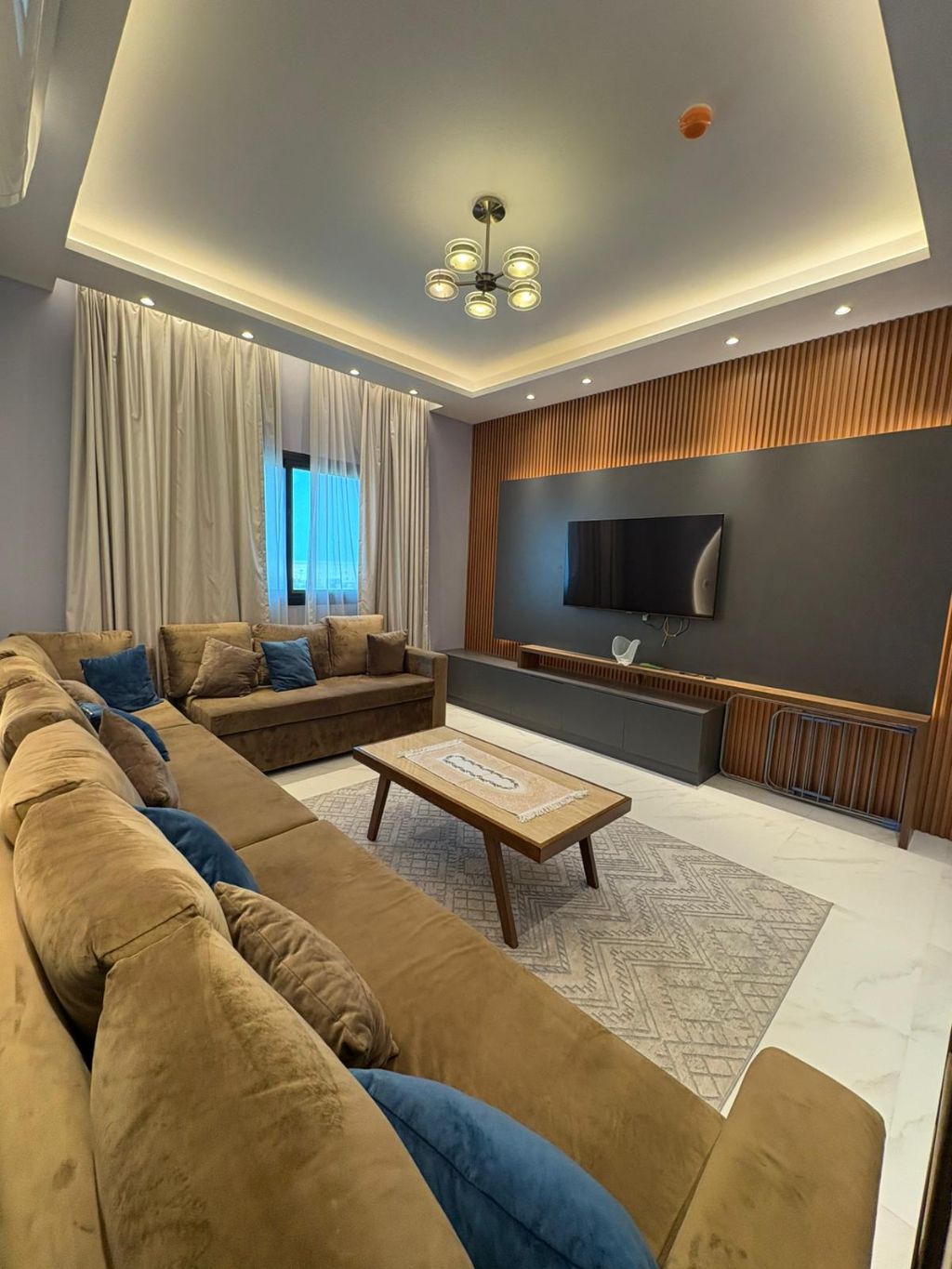 For rent: A luxurious, fully furnished apartment in the Sayya area. A sophisticated apartment with high-end finishing and a prime location, fully furnished and ready for occupancy. It consists of 3 bedrooms, 4 bathrooms, a spacious living room, a fully equipped kitchen, and an elegant dining area. For contact: Mr. Ali Ibrahim.