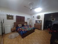 A furnished apartment for rent in Riffa Al Hajiyat, near Mega Mart. The apartment area is 146 square meters, with 3 bedrooms, 2 bathrooms, a kitchen, a living room, an elevator, and a parking space. The rent is 350 dinars, including electricity (limit 50 dinars), and electricity is subsidized.