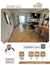 A luxurious apartment with a private pool and sea view in Dilmunia, two bedrooms, 750 BD. Elevate your lifestyle in one of the most beautiful apartments on Dilmunia Island. This apartment features complete privacy with a private pool and a charming direct sea view, making it a unique choice for those seeking luxury. Two bedrooms, 4 bathrooms, spacious living room, kitchen, balcony, private pool. Monthly rent 750 dinars. For contact and inquiries.