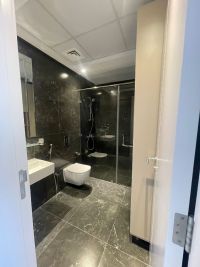 A luxurious apartment for rent, fully furnished in the Seef district, located on the 11th floor. It consists of one bedroom, two bathrooms, a living room, and an open kitchen with central air conditioning. It also includes separate men's and women's clubs, a swimming pool, a children's play area, a parking lot, and a security guard. The monthly rent is 400 Bahraini dinars, including electricity and water, with a 20 Bahraini dinar fee for Damac. Contact for more information.