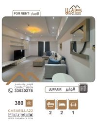 Apartment for rent in the Al Juffair area with a stunning view and exceptional value on the 17th floor in Al Juffair. Enjoy living above the clouds in a modern apartment that offers tranquility and breathtaking panoramic views. The apartment features a comfortable design and the best price in the area, making it the ideal choice for those seeking quality and an appropriate price. Two rooms, a living room, two bathrooms, and a balcony. Price: 380 dinars. Electricity limit: 30 dinars. For contact.