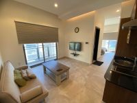 For rent: A luxurious apartment in Al-Busaiteen opposite King Hamad Hospital, consisting of one bedroom, one bathroom, a living room with a kitchen, and balconies. 260 dinars including electricity and water. Maintenance fee: 30 dinars. There is a swimming pool, gym, and parking.