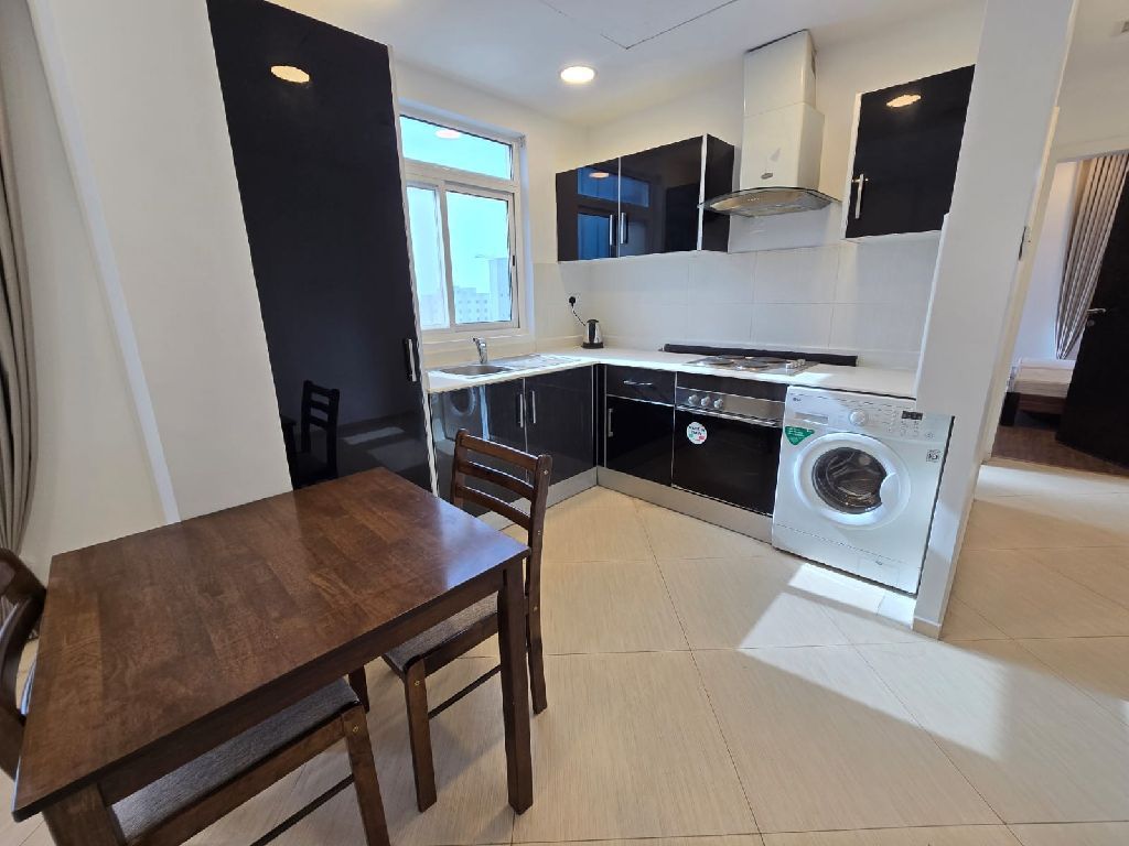 Furnished apartment for rent in Janabiyah, near Mercado Mall. Electricity included. The apartment consists of 2 bedrooms, 2 bathrooms, a living room, a kitchen, an elevator, and a parking space. Rent is 320 BHD. For inquiries, note that electricity is limited.