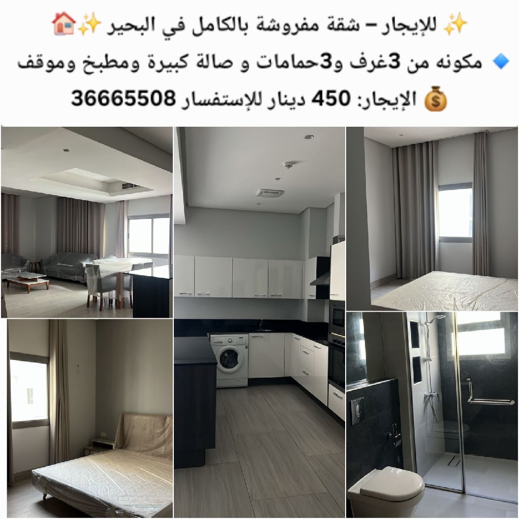 Bahrain - Al Buhair for rent - A fully furnished apartment in Al Buhair consisting of 3 bedrooms, 3 bathrooms, a large living room, a kitchen, and a parking space. Fully furnished and ready for occupancy, with spacious areas and complete comfort. Rent is 450 dinars. For inquiries.