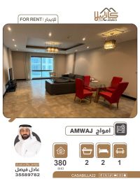 For rent: An apartment in Amwaj. A distinctive apartment for rent in Amwaj Islands. Enjoy living in one of the finest coastal destinations in Bahrain. This apartment features a quiet location and a design that provides comfort and privacy, making it an ideal choice for those seeking quality of life at a competitive price. A distinctive apartment with a beautiful and upscale location, consisting of two bedrooms, a spacious living room, two bathrooms, and a kitchen. Electricity is included up to 40 dinars. Monthly rent is 380 dinars. For contact and inquiries.