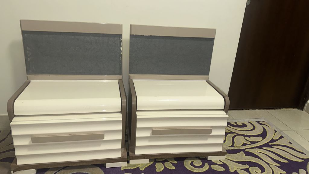 طاولات سرير جانبية (كومدينوا) مستعملة للبيع، 10 دينار للقطعتين.