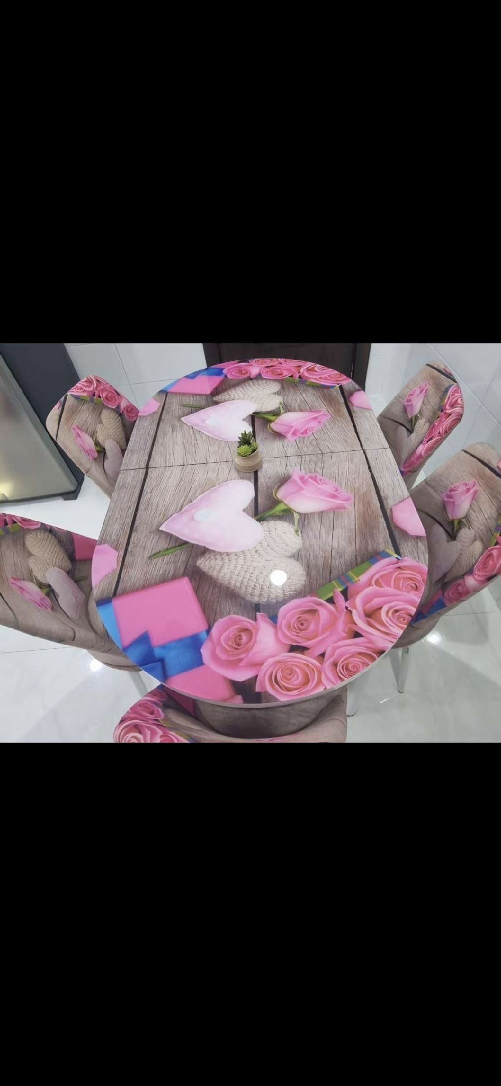 A dining table with 6 chairs, expandable and collapsible, for 45 dinars.