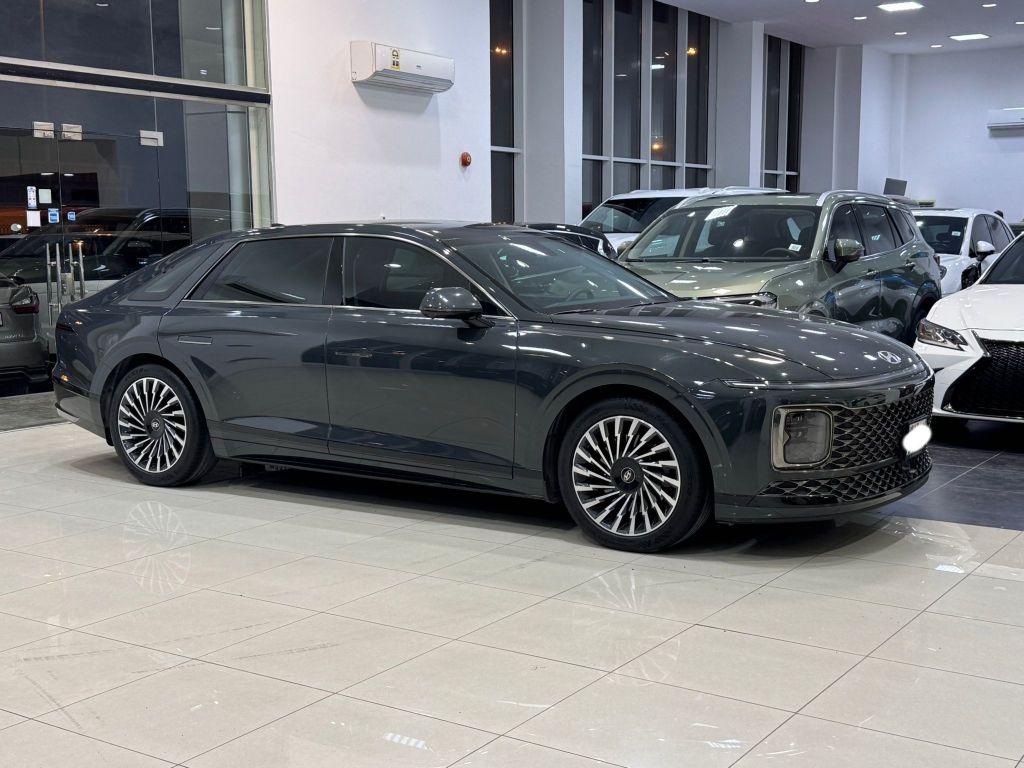 Hyundai Azera 2024 (Grey), Mileage: 31,100 Km, Full Option, Alloy Wheels, Panoramic Roof, Leather Seats, 360 Camera, Sensors, Bluetooth, Cruise Control, Push Start, 6 Cylinders, 3.5L Engine, 5 Seats, Price: BD13,900 (Negotiable), Insurance Valid Until October 2026, Under Warranty, Contact for details.