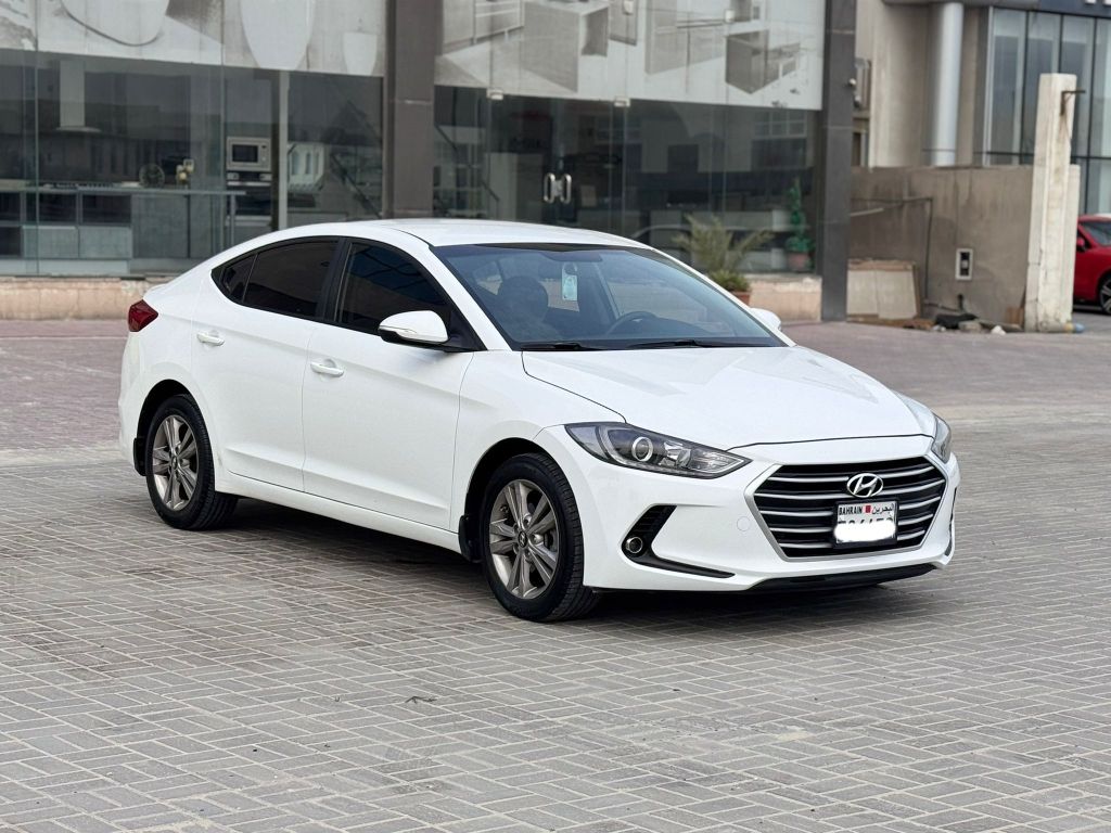 Hyundai Elantra 2017 (White). Mileage: 172,450 km. Mid Option with alloy wheels, sensors, cruise control, Bluetooth. 4 cylinders, 2.0L engine, 5 seats. Price: BD 3,200 (negotiable). Insurance valid until December 26. Contact for details.