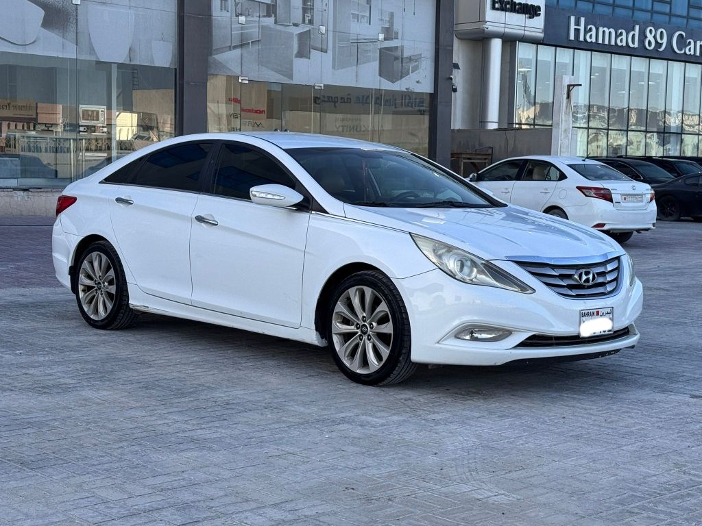 Hyundai Sonata 2012 (White). Mileage: 242,600 km. Mid Option with alloy wheels, sensors, Bluetooth, cruise control. 4-cylinder, 2.4L engine, 5 seats. Price: BD1300 (negotiable). Insurance valid until September 2026. Contact for details.