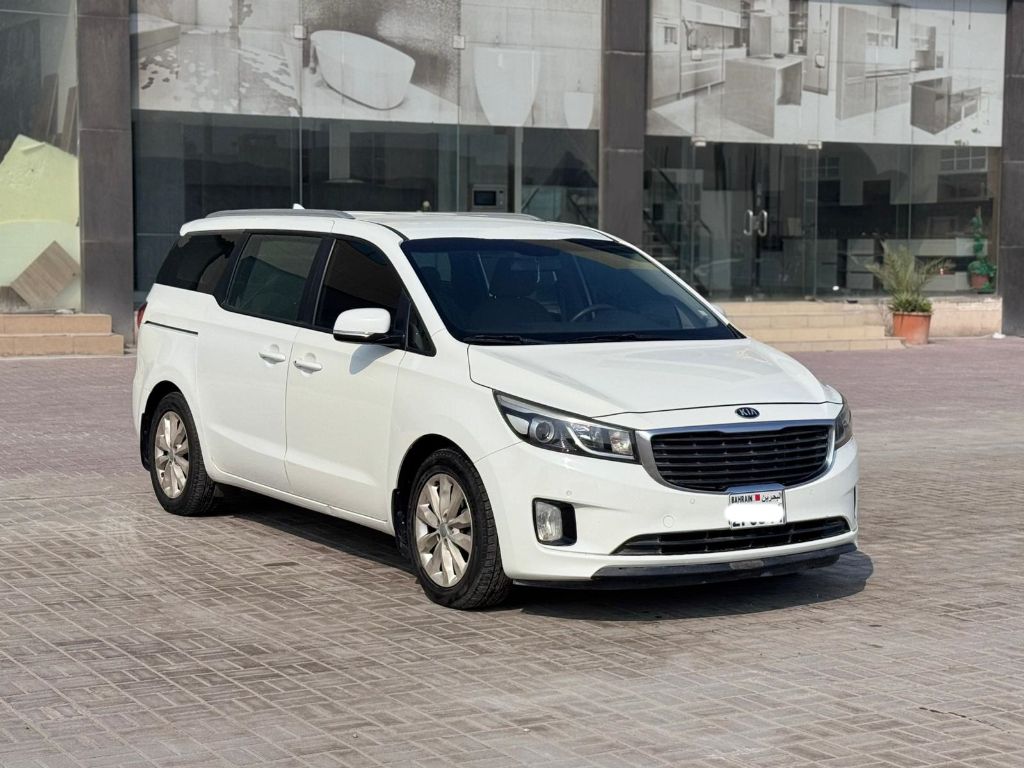 كيا جراند كارنيفال 2018 (أبيض). المسافة المقطوعة: 122,200 كم. خيار متوسط مع عجلات سبائك، أجهزة استشعار، تشغيل بالزر، بلوتوث، مثبت سرعة، والمزيد. 6 أسطوانات، محرك 3.3 لتر، 8 مقاعد. السعر: 3,500 دينار بحريني (قابل للتفاوض). التأمين ساري حتى يونيو 2026. اتصل للتفاصيل.