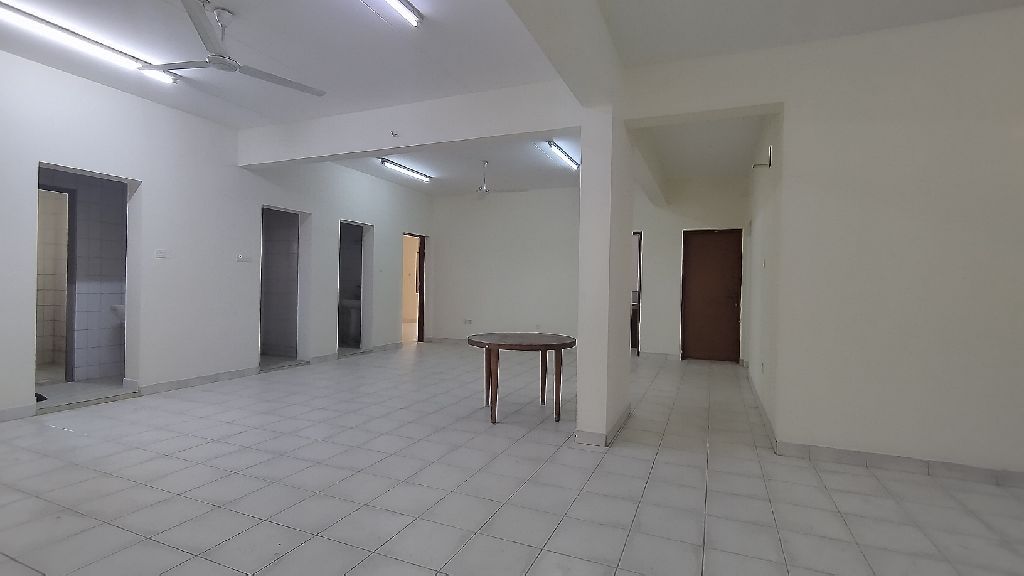 Sitra 6 BHK unfurnished flat for rent for staff or labor accommodation. BD650 without EWA. Spacious hall, 6 bedrooms, 4 bathrooms, and a closed kitchen. Flat on the 1st floor. No elevator. Reference number K240404. Contact for details