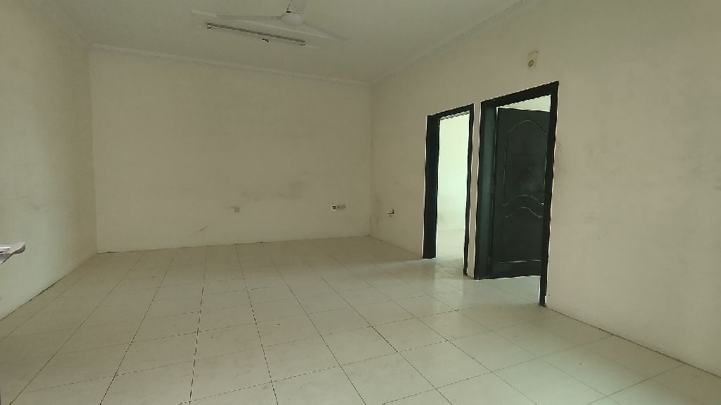 Sitra 2BHK unfurnished flat for rent, suitable for staff or labor accommodation. Price is BD150 per month without EWA. It includes a hall, 2 bedrooms, 2 bathrooms, and a closed kitchen. Reference number K240405. Contact for details