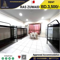 BAPCO Approved Labor Accommodation in Ras Zuwayed BD3500. This standard accommodation is located in Ras Zuwayed, BAPCO Approved for 125 people. It consists of 19 spacious bedrooms, air - conditioned, curtains, bunker cots, enough bathrooms, shower areas, wash basin, spacious kitchen, dining section, laundry area, Camp Boss room, RO Plant, separate EWA meter, separate smoking area, shoe racks, etc