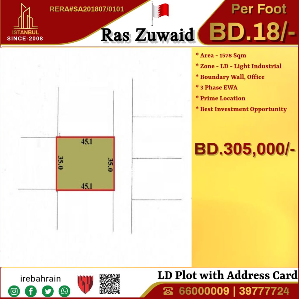أرض صناعية للبيع مع مكتب وEWA ثلاثي الأطوار في رأس الزوايد - 305000 دينار بحريني. أرض صناعية رئيسية جاهزة للأنشطة الصناعية مع وصول سهل. تعتبر هذه الأرض الصناعية في رأس الزوايد فرصة ممتازة للشركات التي تبحث عن مساحة عمل في منطقة صناعية رئيسية، تقع مباشرة مقابل ALBA. تحتوي هذه القطعة على مكتب مجهز بالكامل مع مرافق حمام، EWA ثلاثي الأطوار، ووصول سهل للشاحنات والمقطورات، مما يجعلها مثالية لمجموعة متنوعة