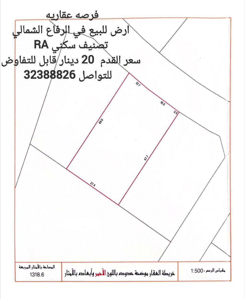 فرصة عقارية أرض للبيع في الرفاع الشمالي، تصنيف سكني RA، سعر القدم المربع 20 دينار قابل للتفاوض. للتواصل