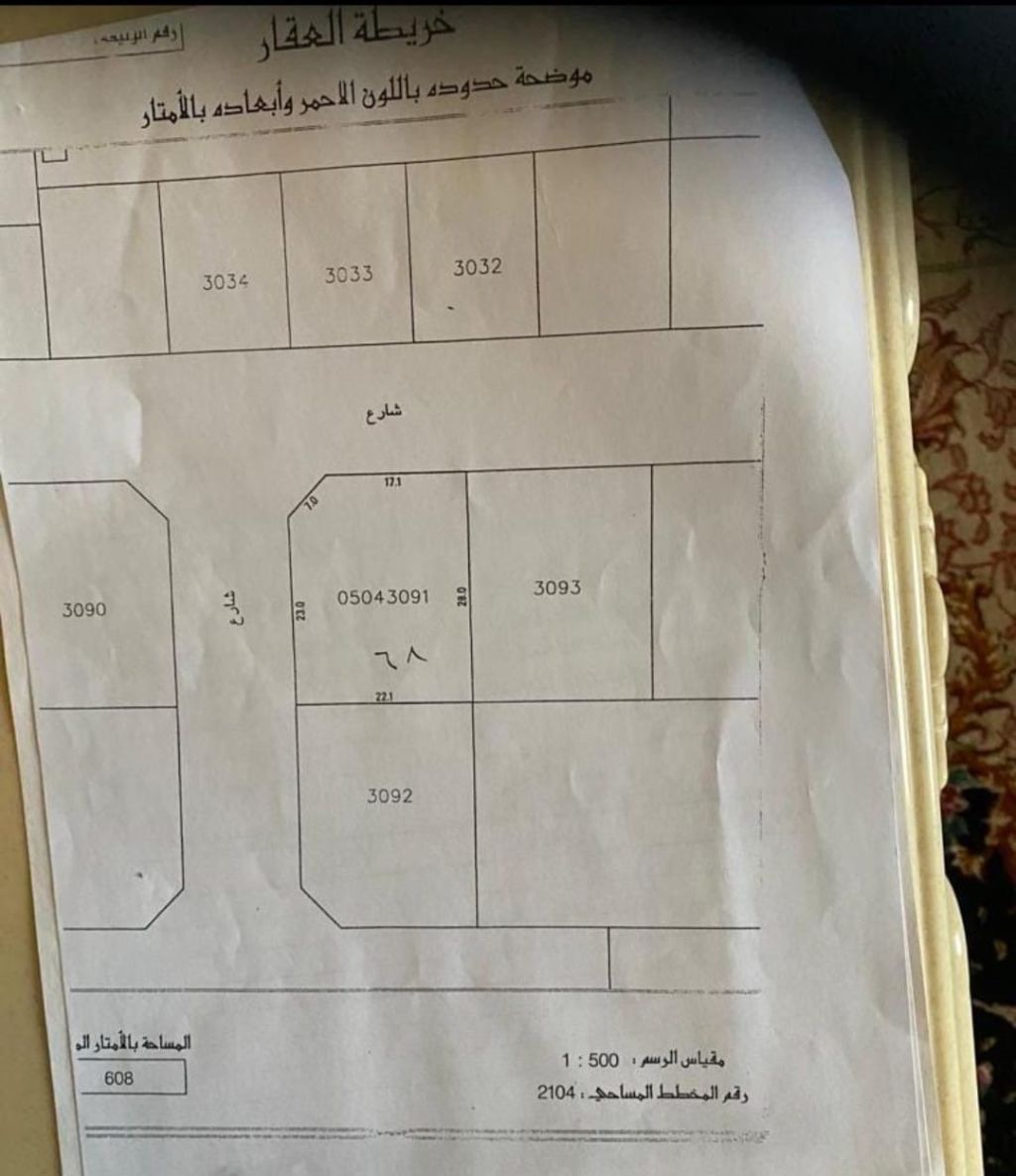 للبيع أرض في الجنبية مخطط الشيخ خالد مساحة الأرض 608 متر مربع على شارعين (زاوية) وقريب من الشارع الرئيسي التصنيف 6دب أدوار سعر القدم 33 دينار قابل للتفاوض المبلغ الاجمالي 215967.18 دينار